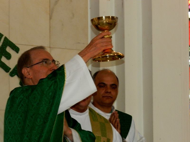 A Santa Missa foi concelebrada pelo Padre Gilmar Margotto e pelos diáconos José Roberto, Lécio Alves e Aparecido Carlos. Os cânticos escolhidos foram os que encantavam os fiéis na época de padre Nino que cantou junto com o coral, fazendo com que muitas pessoas se emocionassem.