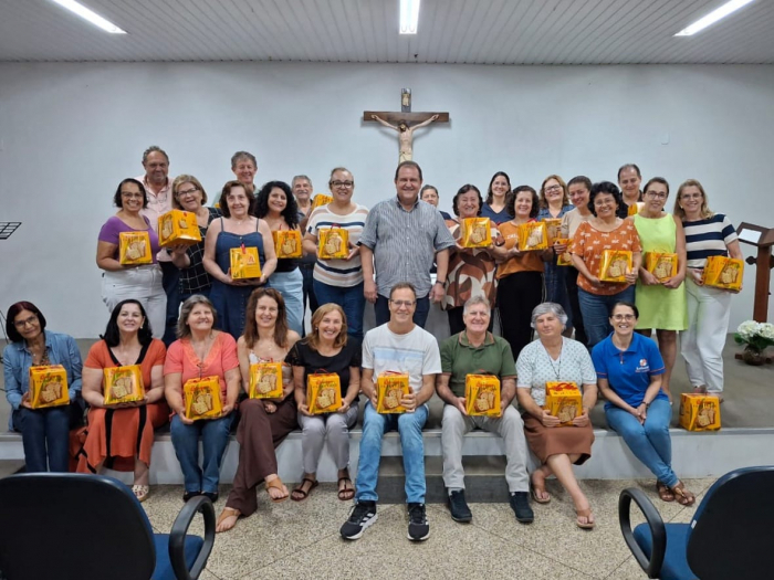 Ao término do encontro, o Padre Gilmar Margotto agradeceu a todos os coordenadores pela vida partilhada na comunidade paroquial da Catedral de Votuporanga e entregou a eles um mimo em agradecimento