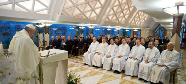 “Começam a fazer parte da vida. Também com as suas ideias e as suas inspirações, ajudam aquele homem a viver melhor… e entram na vida do homem, entram em seu coração e por dentro começam a mudar este homem, mas tranquilamente, sem fazer barulho. É diferente, este modo é diferente daquele da possessão diabólica que é forte: esta é uma possessão diabólica um pouco “de salão”, digamos assim. E isto é o que o diabo faz lentamente, em nossa vida, para mudar os critérios, para levar-nos à mundanidade. Mimetiza-se em nosso modo de agir, e nós dificilmente nos damos conta. E assim, aquele homem, liberto de um demônio, torna-se um homem prisioneiro, um homem oprimido pela mundanidade. E isto é aquilo que o diabo quer, a mundanidade”.